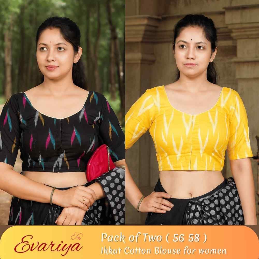 Riyashree Women’s Ikkat Cotton Ready Made Saree Blouse – Pack of 2 | Wedding Season Sale – 056 058